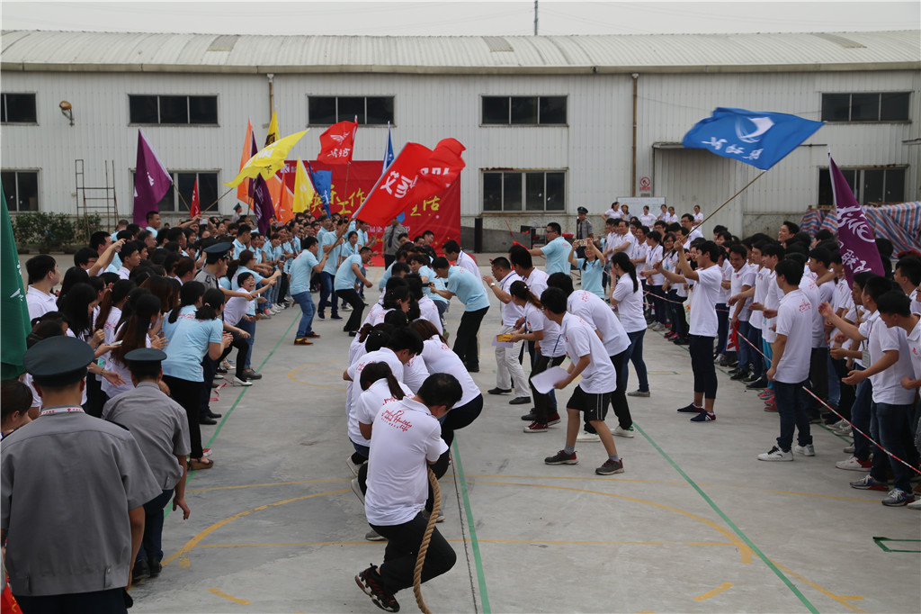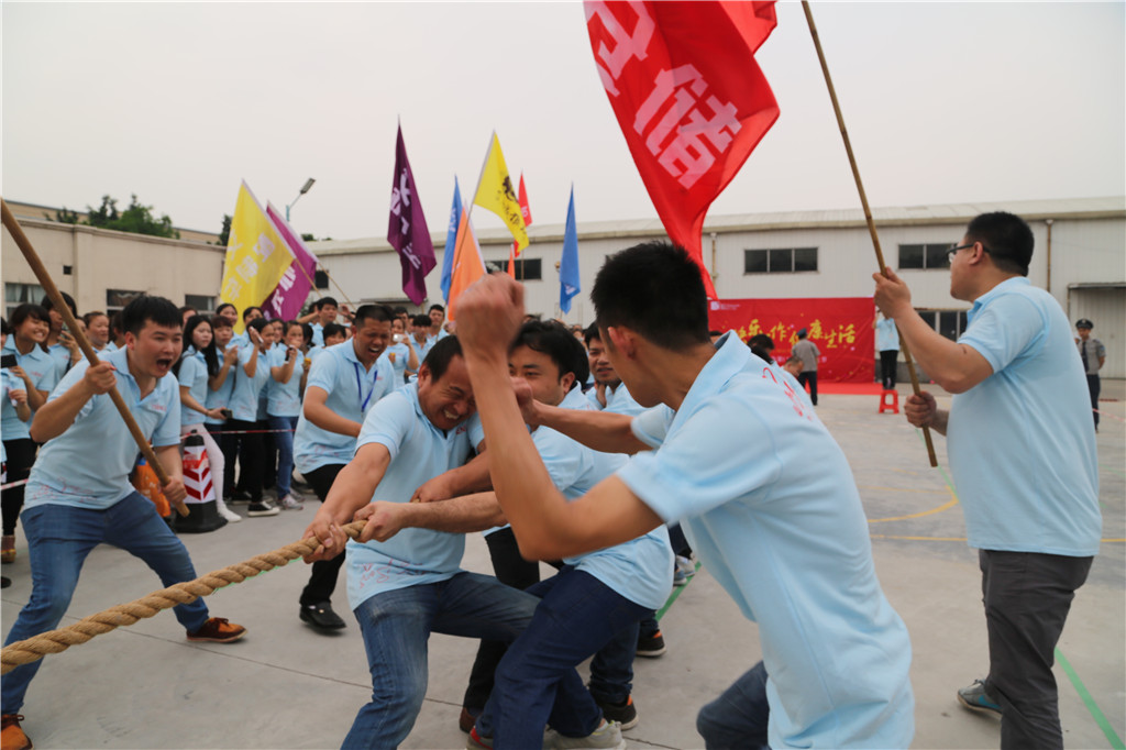 拔河比賽是開幕后的第一項(xiàng)運(yùn)動(dòng)。各隊(duì)運(yùn)動(dòng)員精神抖擻,擺好架勢(shì),兩眼注視著競(jìng)爭(zhēng)對(duì)手,雙手像鐵鉗一樣牢牢地抓住大麻繩,只等裁判員一聲令下。加油聲、吶喊聲此起彼伏,經(jīng)過(guò)幾個(gè)激烈的回合,最后由戰(zhàn)狼隊(duì)奪得拔河比賽冠軍!