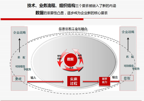 兩化融合,即工業(yè)化與信息化的深度融合,是一項國家戰(zhàn)略決策。通過在企業(yè)內部推行并建立一套管理體系,形成企業(yè)長期推動兩化融合的內在機制。輔助企業(yè)理清業(yè)務模式和業(yè)務流程,消除內部管理阻力;以制度創(chuàng)新保障技術創(chuàng)新、商業(yè)模式創(chuàng)新,形成良性循環(huán)。在操作層面體現(xiàn)為不斷推進數(shù)據(jù)、技術、業(yè)務流程、組織結構四個基本要素互動創(chuàng)新和持續(xù)優(yōu)化的過程!