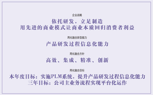 以提升產(chǎn)品研發(fā)過程信息化能力、主業(yè)務流程三年內實現(xiàn)平臺化運作為目標,在ERP系統(tǒng)和PLM系統(tǒng)集成環(huán)境下,搭建產(chǎn)品研發(fā)過程信息化管理平臺,從物料、技術、產(chǎn)品、業(yè)務流程、數(shù)據(jù)查詢等方面進行綜合平衡和優(yōu)化管理,切實提高產(chǎn)品質量、加快產(chǎn)品研發(fā)速度和創(chuàng)新、降低成本,實現(xiàn)對整個產(chǎn)品供應鏈的有效管理。