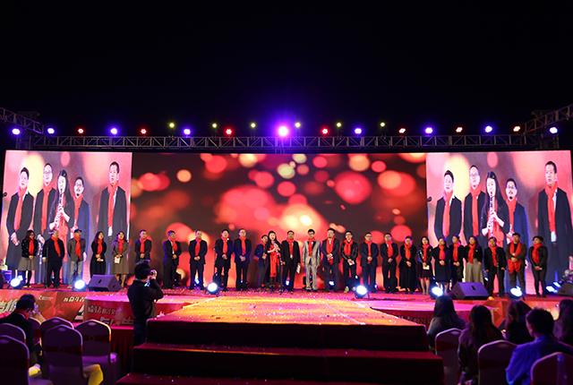 受現(xiàn)場氣氛感染,唐董也攜吉他登臺,即興彈唱了《夜空中最亮的星》、《當你老了》,鼓舞棟方股份集團的奮斗者們,在新的一年勇敢前行。