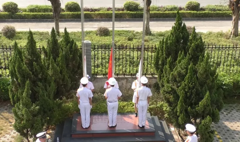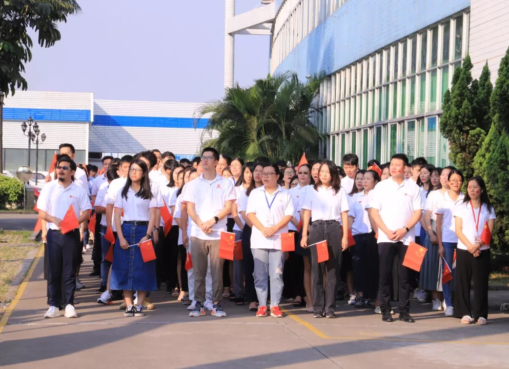 2019年9月30日,星期一,十一國慶節(jié)前夕,棟方股份公司大樓前面空地、數(shù)百次國旗升起的地方,今天迎來了一次特殊的周一升國旗儀式,因?yàn)槊魈炀褪俏覀儌ゴ笞鎳赣H的七十華誕,七十載壯麗歷程,賦予了今天棟方企業(yè)早會(huì)升旗儀式不同尋常的意義。