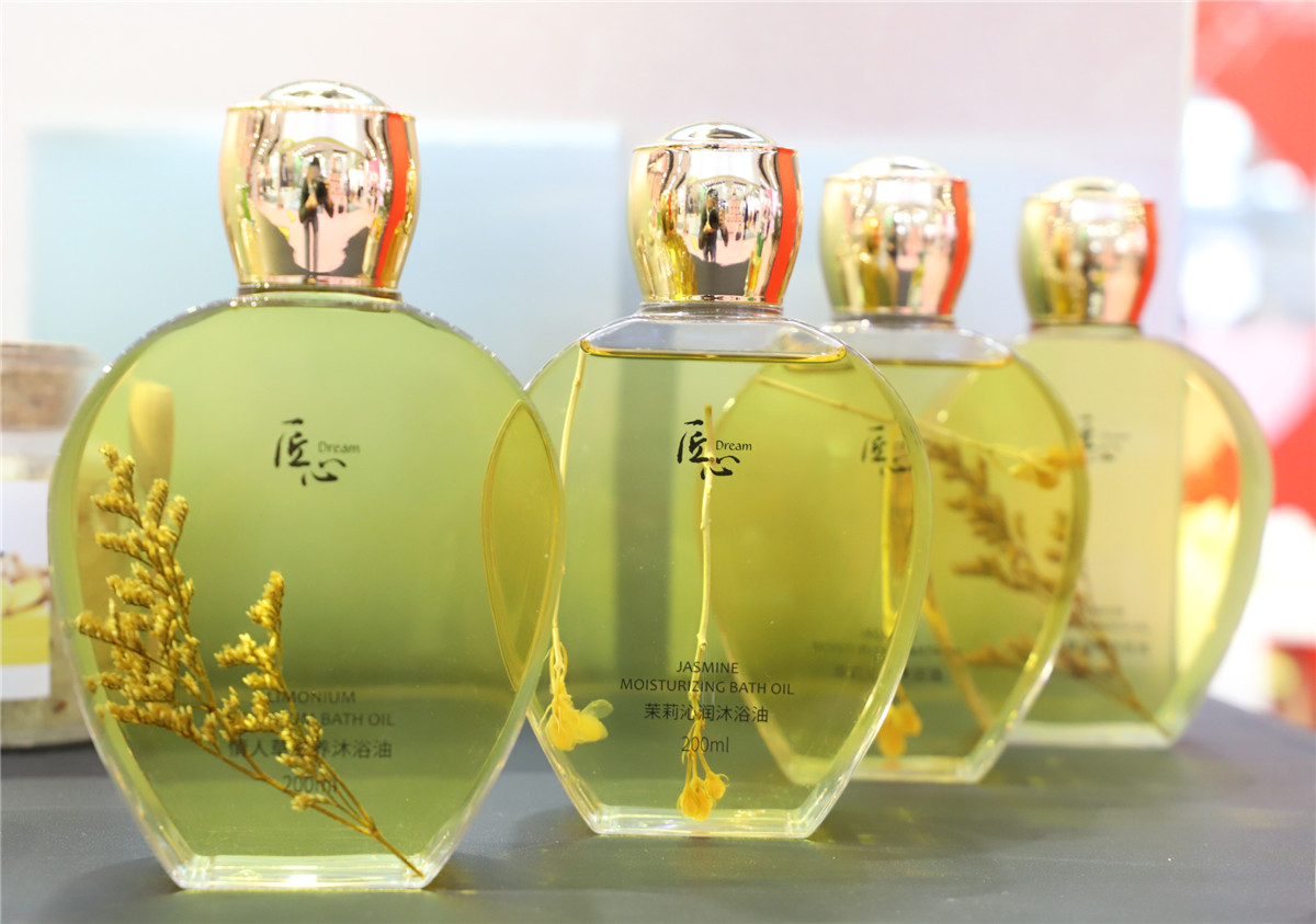 創(chuàng)意升級(jí),科技加碼,棟方股份館內(nèi)陳列眾多創(chuàng)意星品。輕醫(yī)美、植物有機(jī)、精油、花瓣添加、彩妝、香水等全部美妝品類(lèi)產(chǎn)品展現(xiàn)眼前,向每一位駐足參觀的客戶(hù),展示著棟方股份技術(shù)與藝術(shù)完美結(jié)合的創(chuàng)新成果。